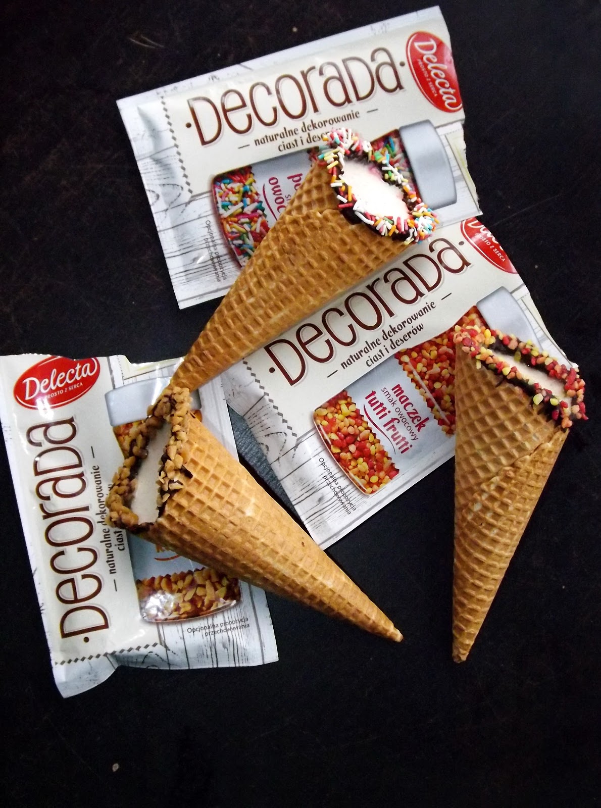 - dowolne posypki do dekoracji ciast Delecta Decorada.