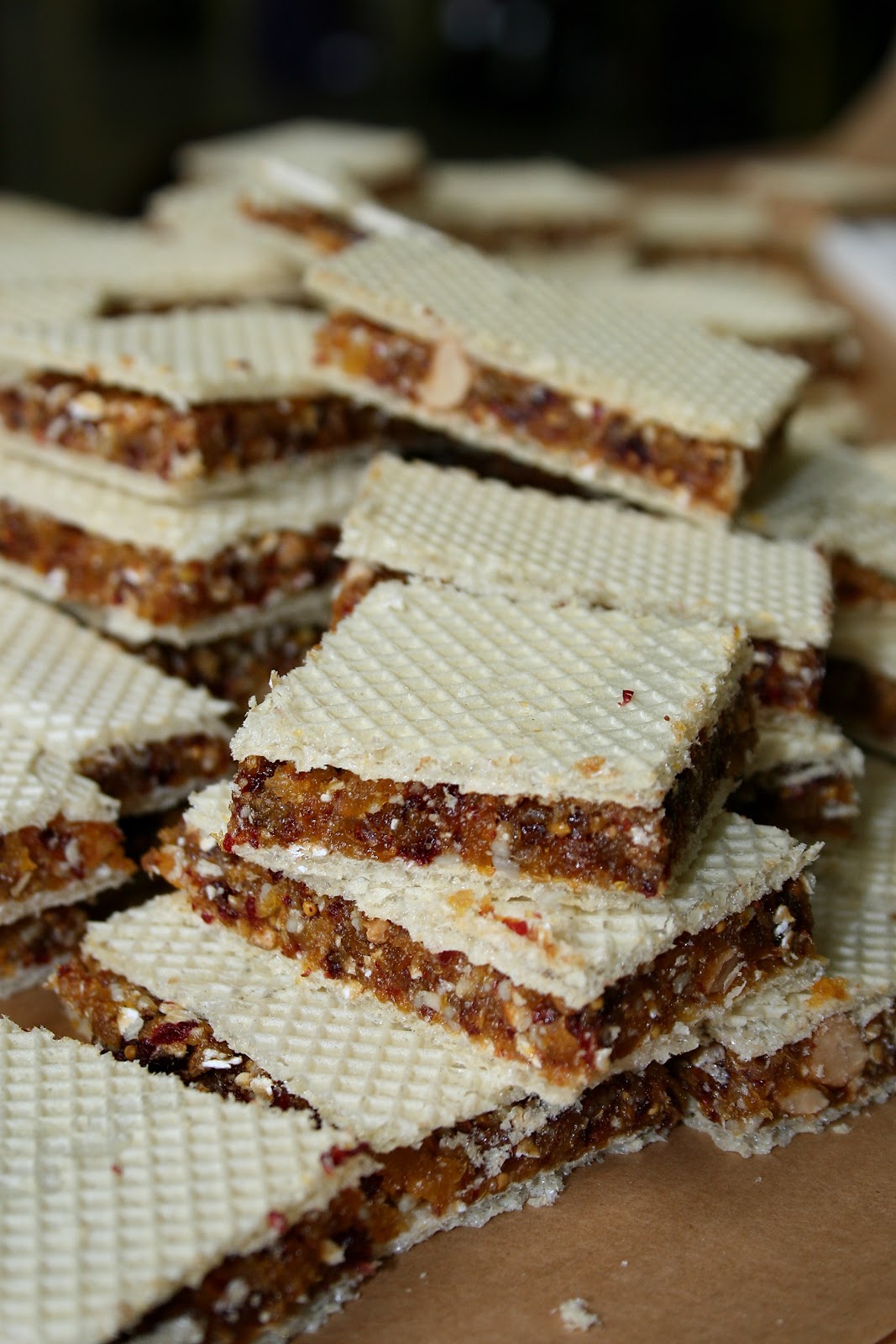 Rada: można przed przełożeniem masy, andruty posmarować cienko masłem orzechowym. Uzyskamy smak bardziej orzechowy z lekko słonym akcentem.